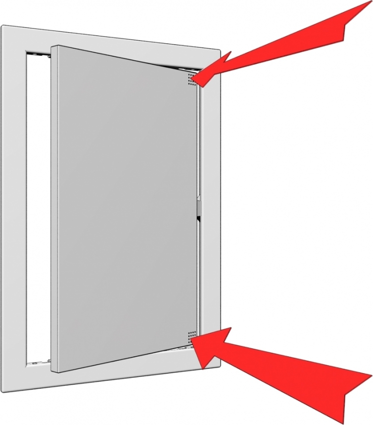 Для доступа к скрытым узлам и инженерным коммуникациям. Предназначен для установки в стене или потолке. Открывается и закрывается легким нажатием. Возможность универсального монтажа для левостороннего или правостороннего открывания. Возможно использование во влажных помещениях. Монтаж осуществляется при помощи раствора или клея.