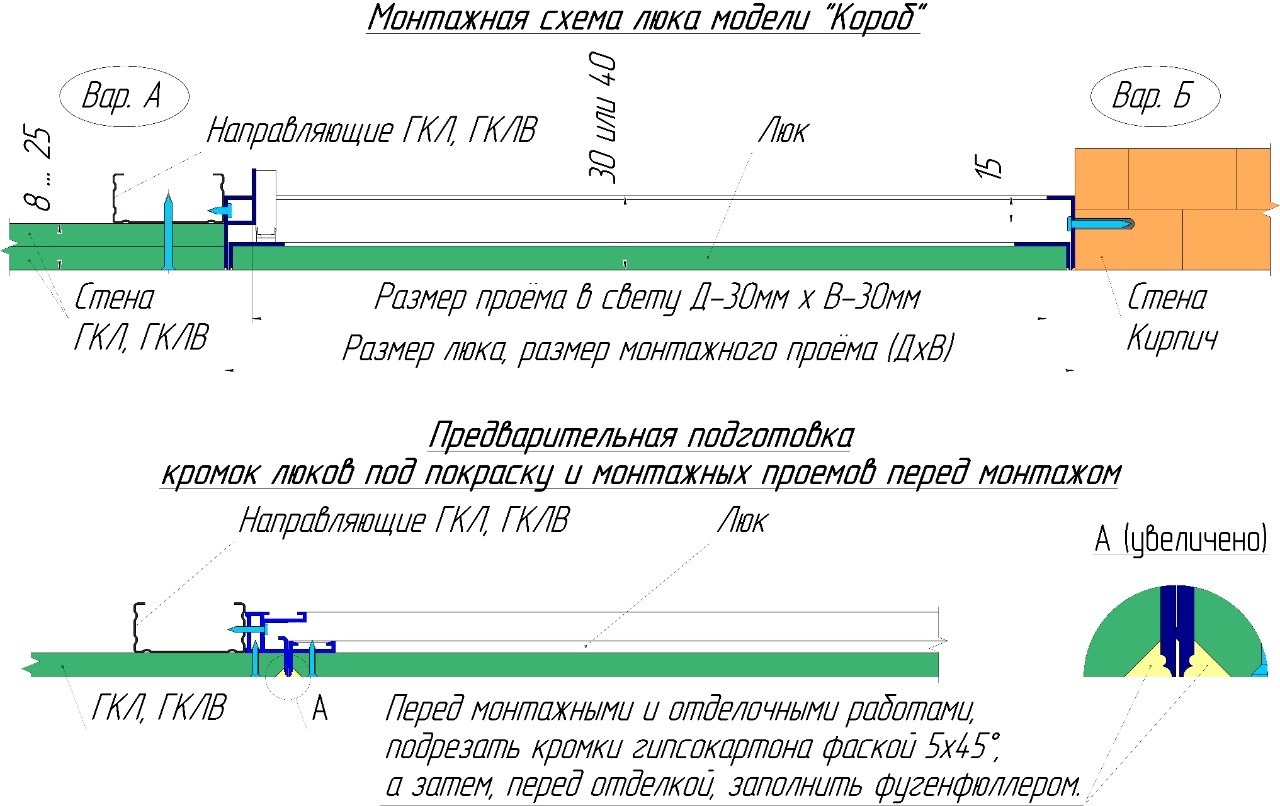 По периметру рамы расположена фаска, что позволяет при установке и покраски дверцы быть люку почти что невидимым, после окончательной отделки месторасположение люка выдает только тонкая аккуратная щель по периметру дверцы.