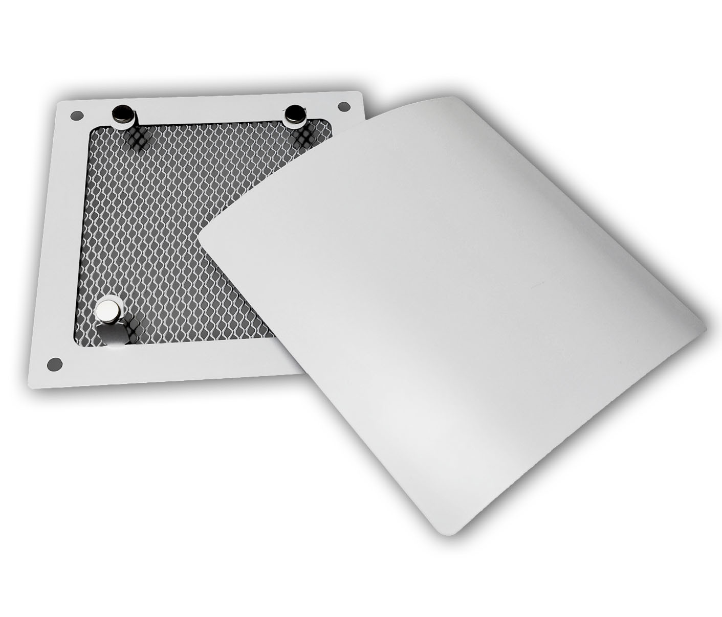 Решетка РД состоит из двух частей: декоративной панели и монтажной рамки с сеткой (крепится саморезами или приклеивается). Панель устанавливается на рамку и держится на магнитах. Таким образом площадка скрывает за собой решетку, что придает красивый внешний вид и скрывает от глаз пыль и грязь, которые оседают на сетке.