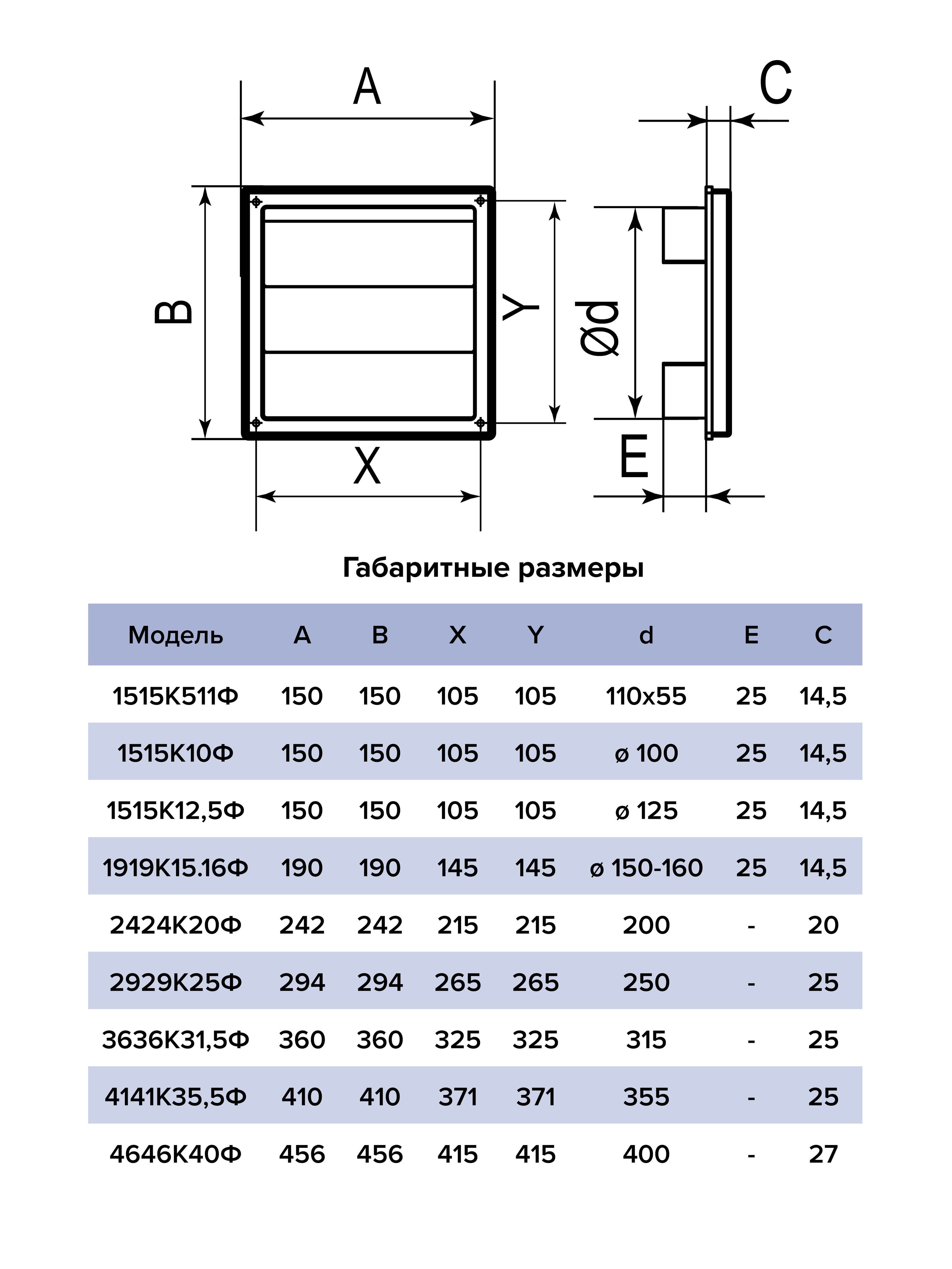 Решетка КФ монтируется на внешних выходах вентиляционных систем. Имеет подвижные гравитационные жалюзи, исключающие возникновение обратной тяги. КФ выпускается из ASA-пластика, стойкого к атмосферным осадкам и перепадам температуры. Решетки 1515К10Ф, 1515К12,5Ф, 1515К511Ф, 1919К15.16Ф выпускаются в белом, бежевом и сером цвете. Модели 2424K20Ф, 2929K25Ф, 3636K31,5Ф, 4141K35,5Ф, 4646K40Ф — только в сером.
